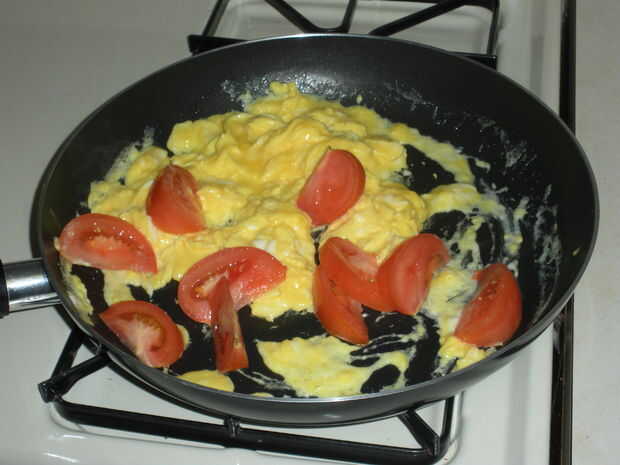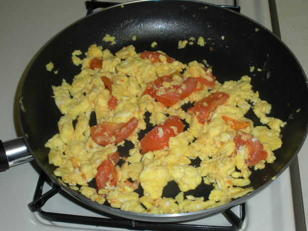 Mientras se cocinan los huevos, añadir dos o tres cucharadas de azúcar. Esto ayudará el tomate para romper y hacer dulces.