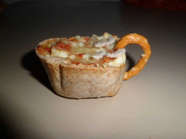 -Tomar la tortilla y cortar círculos y fijar en tu taza muffin como se muestra en mis fotos.