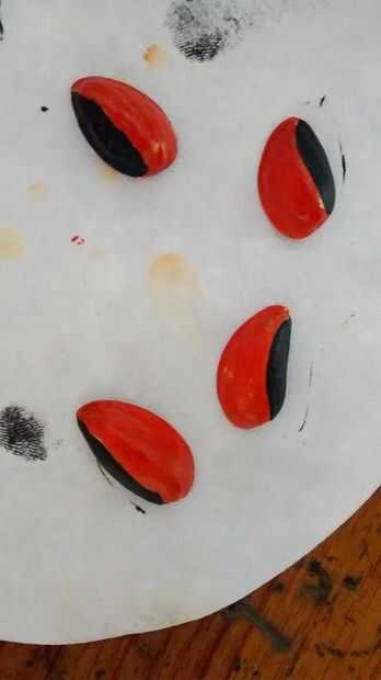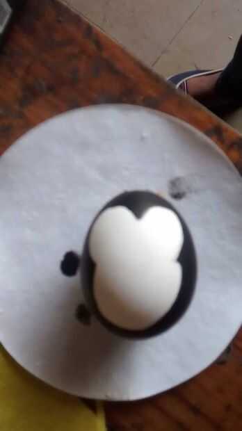 Color de los huevos, cáscaras de pistacho para hacer alas y arcilla hechas pico y patas.