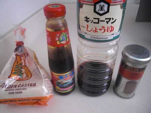 En lugar de salsa de ostras y especias chinas, Chile en polvo o polvo de curry es muy bueno. Simplemente salsa de soja y azúcar también es suave y sabrosa.