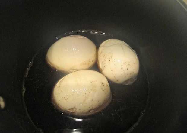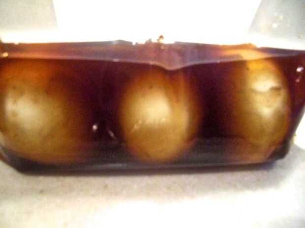 Ingredientes: 3 huevos (hervidos y pelados de suave), 300cc de agua, 1 cucharada de azúcar, 1 cucharada Salsa de soja, * (1/2 cucharadita de salsa de ostras, 1/2 cucharadita de especia de cinco chinos)