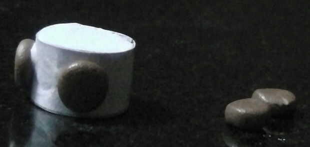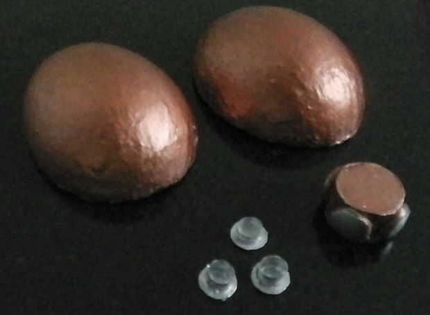 -Hacer pequeños pedazos de arcilla y pegarlas en el cilindro de papel en el paso anterior y pintar con colores metalizados
