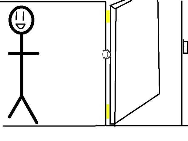 : Solo pones el dedo pulgar y dedo índice a través de la grieta entre la puerta y su marco.