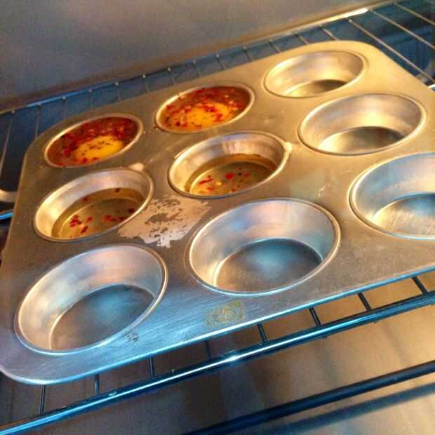 Paso 1: Preparar para hornear 1. precalienta el horno a 325 grados.2. ajuste el temporizador a 30 minutos3. colocar huevos en un molde de muffin limpio.4. cuando se calienta el horno, poner la lata en e iniciar el temporizador.Paso 2: Crear el baño d