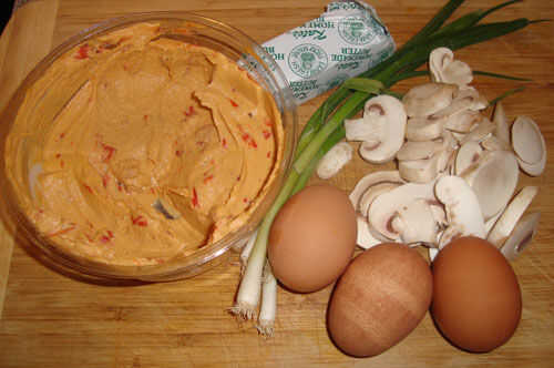 Humus: Humus está hecha de garbanzos de la tierra y es delicioso en huevos aunque puede sonar extraño. No una vez que lo pruebes! A veces va sustituir al pesto, guacamole o aguacate o incluso carnes como tocino, chorizo, pavo, etc..