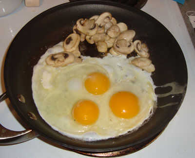 Yo romper los huevos directamente en la sartén. No preocuparse de romper las yemas o haciendo un lío. Las yemas se rompe muy pronto!