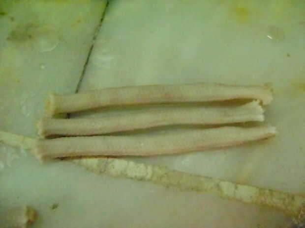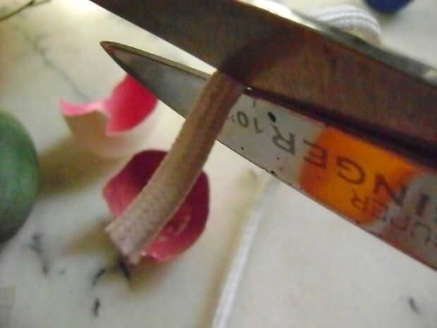 Si usted está haciendo velas con cáscaras enteras, mecha medida colocando en la cáscara, luego corte con 1 pulgada extra.