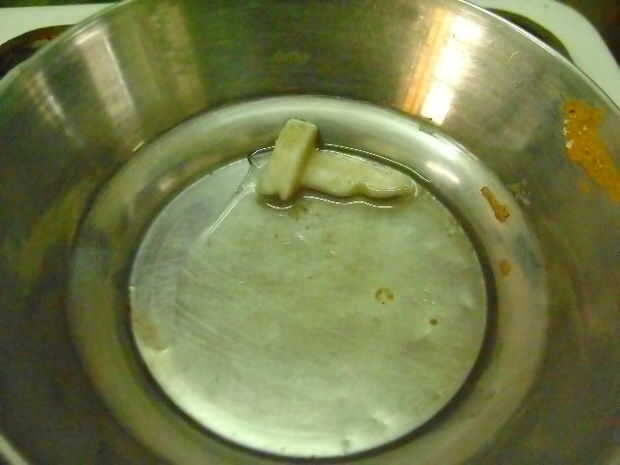 Derretir una vela vieja en doble boiler(use candle-making pots and utensils).