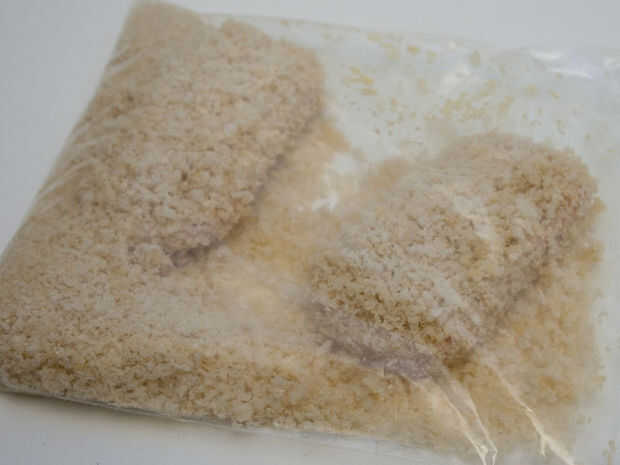 2. Llene una bolsa con la harina y otro con el pan rallado panko.