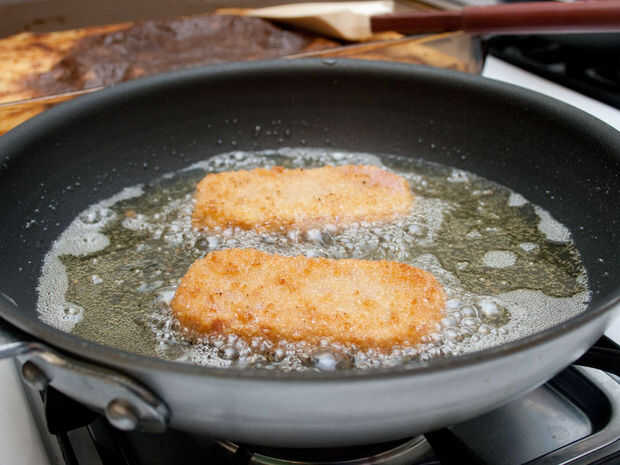 6. Poner 1/2" del aceite para freír en una sartén rehogar y a temperatura de fritura.