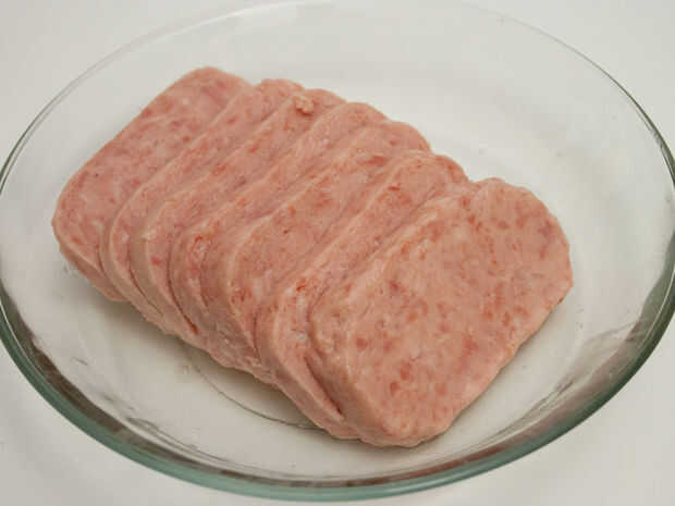 1. Cortar el SPAM en 1/4 rodajas gruesas.