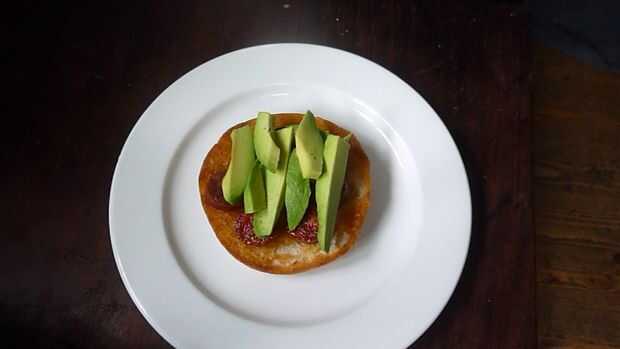 Coloque la palta en rodajas en siguiente. Cuadro 3