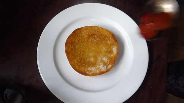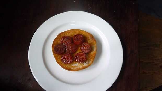 Freír la mitad de mollete inglés en aceite de chorizo. Imagen 1