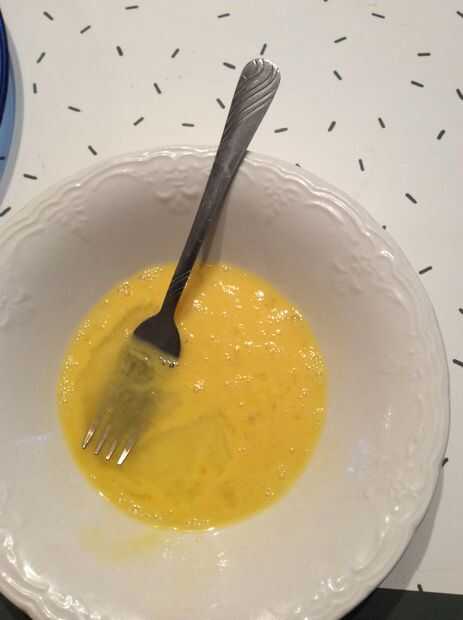 Mezclar clara de huevo y la yema junto bien con un tenedor