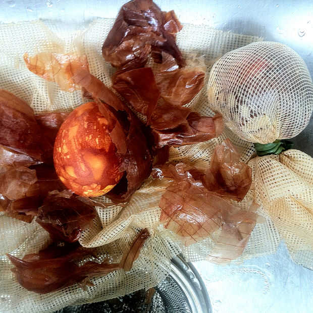 pieles de cebolla y las flores se han utilizado para teñir los huevos en la celebración de la primavera en Baja Sajonia, los países bajos del este hasta el norte de Alemania y Estonia - desde tiempos paganos. Este método de muerte huevos todavía se