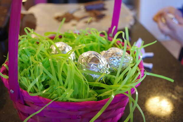Lo bueno de pensar el esfuerzo más (y dulces) poner en su travesura, más creíble será. Así que voy a añadir unos huevos de pequeño caramelo a la cesta antes de ponerlo hacia fuera en el trabajo.