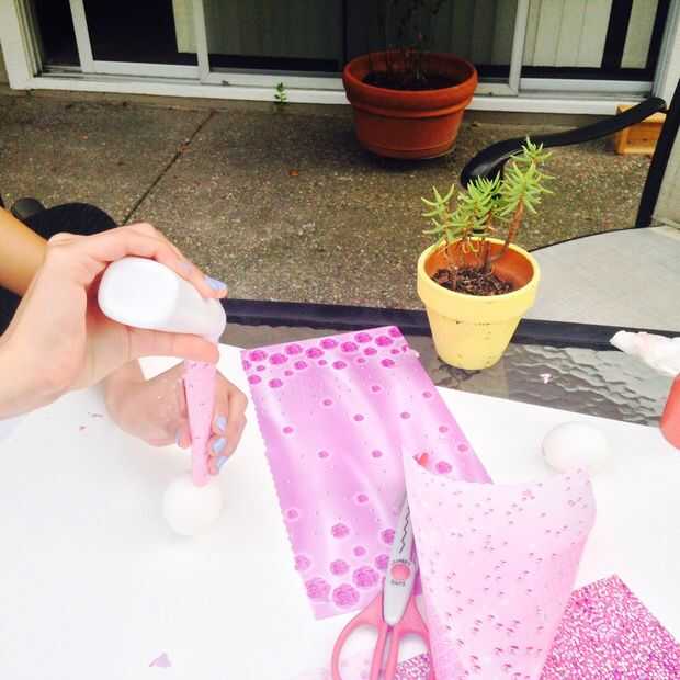 El confeti, cortar el papel de colores en tiras y continuar corte en pedazos pequeños que cabrían en el agujero. A menos que quieras ser un mal podría rellenar los huevos con el polvo de bebé. Para obtener polvo de bebé o confeti en los huevos, hacer una forma de cono con el papel de extra y poner el confeti / polvo por la parte superior del bebé.