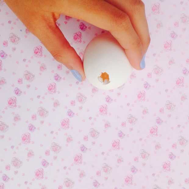 esto es un arte super impresionante para un día de la madre o cumpleaños! Consiste en un hueco huevo intacto con un mensaje dentro.Lo que necesitaráHuevoPINPapelConfeti o sprinklesPinturaPaso 1: Obtener su huevo y hágale un agujero pequeño en ambos e