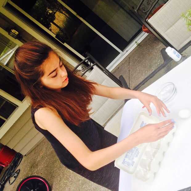 Tomar su objeto puntiagudo y meter el huevo hasta que hay un huevo en la parte superior de los huevos.