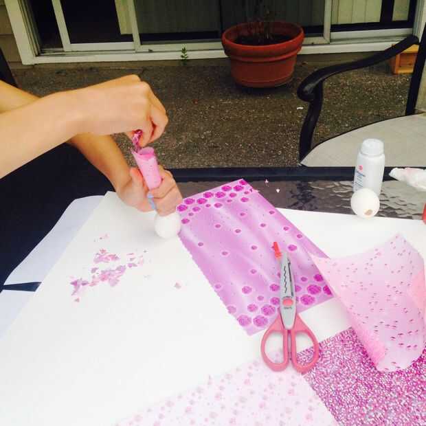 El confeti, cortar el papel de colores en tiras y continuar corte en pedazos pequeños que cabrían en el agujero. A menos que quieras ser un mal podría rellenar los huevos con el polvo de bebé. Para obtener polvo de bebé o confeti en los huevos, hacer una forma de cono con el papel de extra y poner el confeti / polvo por la parte superior del bebé.