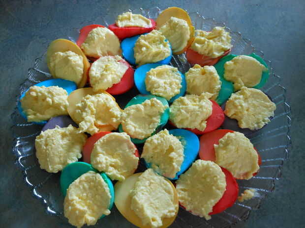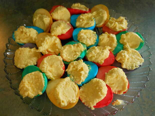 huevos de Deviled son una adición deliciosa y fácil a casi cualquier comida. El concepto básico del huevo se volvió mal que es oh tan bueno es quitar la yema de un huevo, mezclar con todo tipo de golosinas sabrosas y luego la relleno en la parte blan