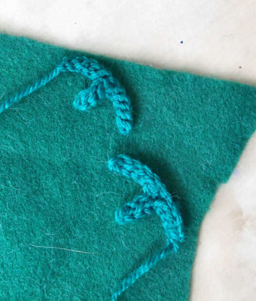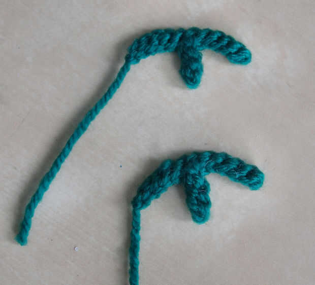 Cadena 10, sl st trasera 5, cadena 4, sl st trasera 3, sl st primera puntada. Fije apagado, dejar la cola.
