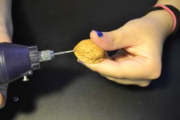 Con la herramienta giratoria haga dos pequeños agujeros en la parte superior de la tuerca.