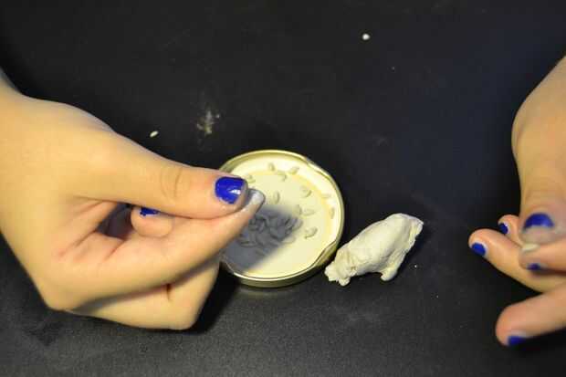 Para las escalas tienes que coger el trocito de arcilla y rodillo en los dedos para crear una forma redondeada. Hacer un montón de ellos.