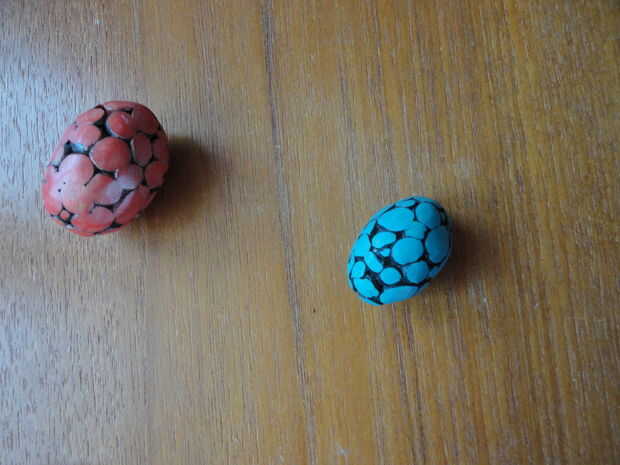 como una diversión poco proyecto, hice un par pequeño dragón huevos que pueden utilizarse como colgantes o abalorios solo un poco. lo hicieron estos fue un montón de bolitas de arcilla polimérica, y pegarse juntos en forma de huevo general. el revuelto se trata mejor. asomó entonces un todo a través de ellos con un clip de papel en caso de que quiero poner en un collar o un llavero. después de la cocción les para la cantidad de tiempo, cubrió sus exteriores con varias capas de pintura negra. después de eso vino lo más ardua e importante parte del proceso: lijado. para hacer el color Mostrar y dejar negro en todas las pequeñas grietas, lijado los huevos con mi lijadora de banda, alisando hacia fuera. entonces usé lija manual (si no tiene una lijadora de banda, usted puede utilizar esto para todo el proceso) para suavizar más. usé 90 a 120 a 300 lija para hacerlo bonito y brillante. Después, pulimentado en mis jeans, es fáciles de frotar sólo en los pantalones al ver la televisión o algo, sólo le da ese brillo extra. para el rojo, entonces fui con un toque de pintura oro transparente para hacerla parecer más como un tipo ardiente de huevo, añade un agradable efecto.