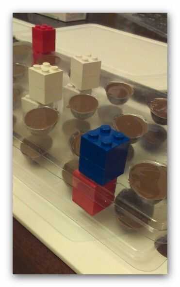 Cuando hay una venta ella a veces hará hasta cerca de 80 dulces, que rápidamente llena la nevera. Para hacer todo eso y espera entre lotes para el chocolate fijar para siempre, por lo que "pide prestado" algunos de nuestros hijos Lego y utiliza para separar los moldes.