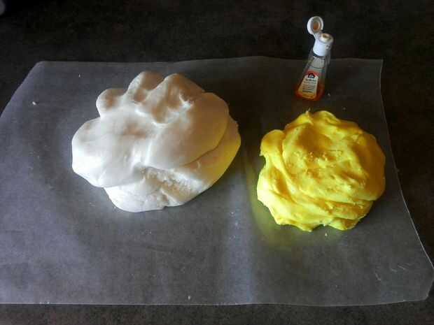 Color 1/3 de la mezcla de fondant con colorante de alimentos (amarillo)