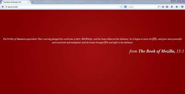 Si usted busca Firefox para sobre: mozilla, usted puede leer el Evangelio de Mozilla.