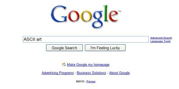 Ir a google y buscar arte Ascii.  El logo de google cambia a arte ASCII.