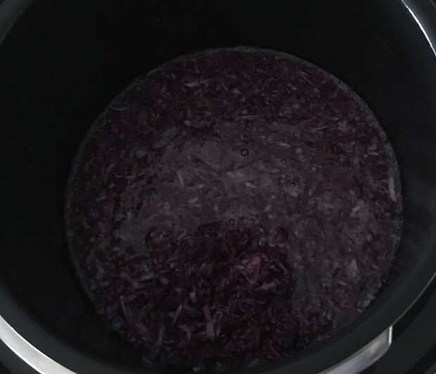 Eligió para presión cocinar la col morada y remolacha a utilizar áreas de cocción diferentes y sospecha (correctamente) mi PC haría un gran trabajo de extraer los colores de la col y la remolacha, fueron cada uno cocinadas (con 4 tazas de agua y 2 cucharadas de vinagre) en alta presión durante 8 minutos. Si no tienes una olla a presión se puede utilizar la estufa para hervirlos. Colar las verduras, reservando el líquido y lavar el PC insert antes de añadir otra verdura, desechar sólidos.