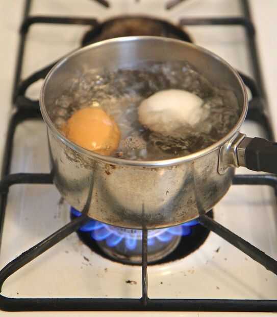 Punto de ebullición es un paso clave porque calientan los huevos. Las ceras se funden sólo en los huevos si cada huevo está caliente.