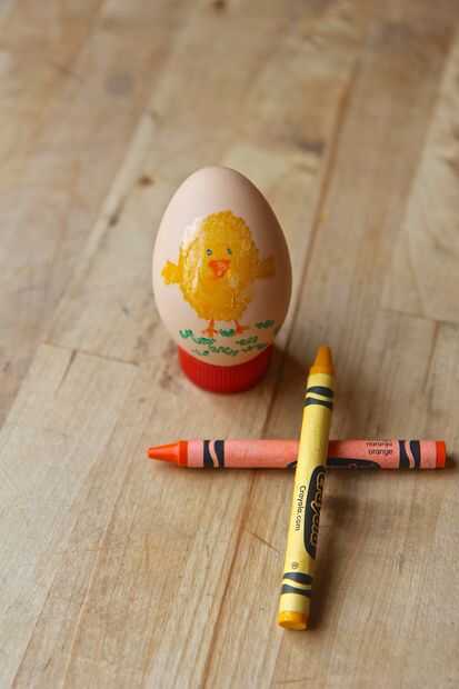 Empezar a decorar. Dibujar con sus crayones presionando su punta ligeramente contra la cáscara de huevo caliente. No presione demasiado fuerte o puede caer el huevo. Ser creativo y probar diferentes diseños y colores diferentes de cáscara de los huevos. Como te quedas sin habitación cuidadosamente (