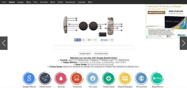 Para reproducir una canción en la guitarra de Google, puede aprovechar las cuerdas o escriba en letras y números. Algunas canciones aparecen en la página.