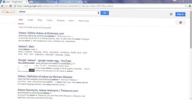 Google busca "torcida" o "inclinación" hará que los resultados de la búsqueda que se mostrará en un ligero ángulo.