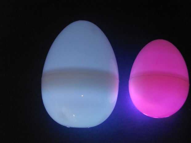 Puesto que la base es de plástico blanco translúcido y el interior de los huevos actúa como un reflector de la luz huevos encima bastante uniformemente!