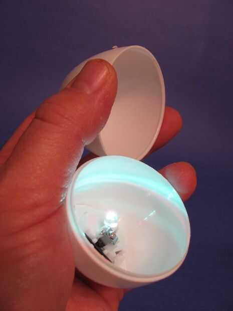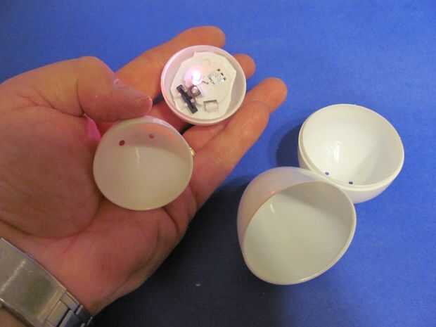 Por supuesto, encender el LED (que tendrás que tirar de una cinta de plástico). A continuación, colocar el conjunto del LED (lo que quedó después de sacar la vela) en un huevo. Coloque el huevo juntos y ahí lo tienen... Brillante, de Color cambiante los huevos de Pascua!