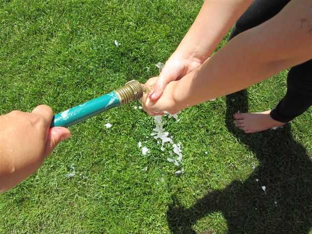 Estábamos afuera, así que mi kiddos enjuagarse las manos con la manguera - siempre una simple diversión lo en sí mismo.