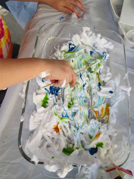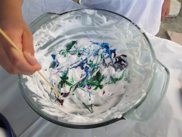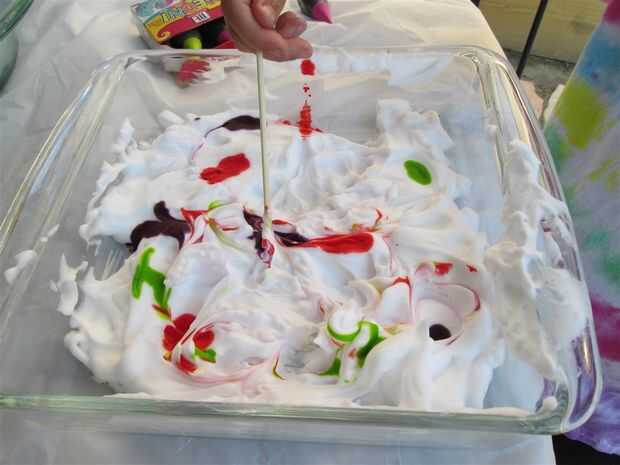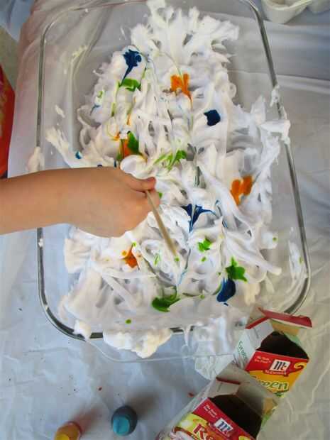 Este paso es agitar ligeramente los colores para que cuando el huevo está enrollado alrededor, recoge diferentes colores en diferentes líneas y remolinos.