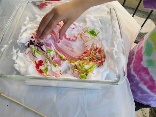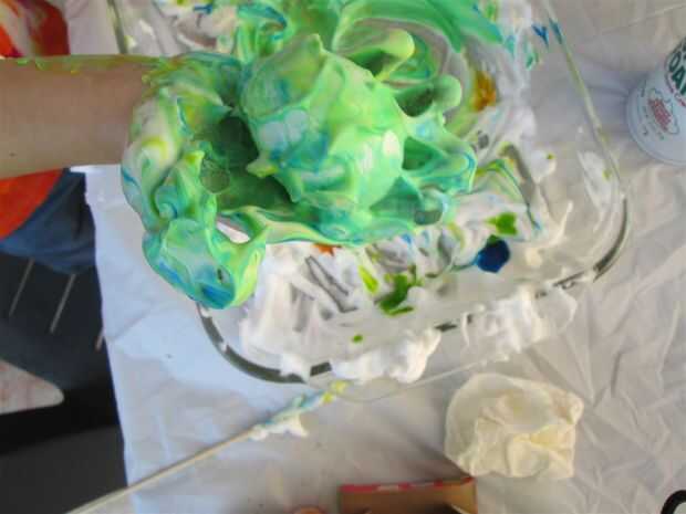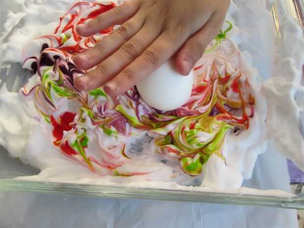 Mi hija aunque entendido cómo hacer rodar el huevo para que su mezcla se encontraba todavía en diferentes colores después de los tres de sus huevos se sumergieron en la crema de afeitar para teñirlos.