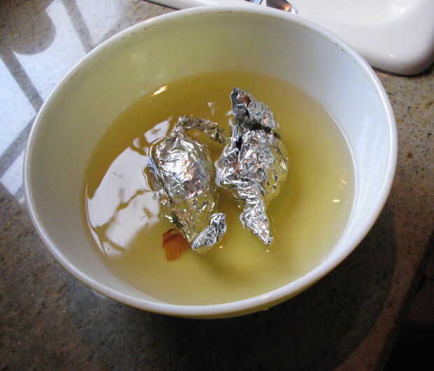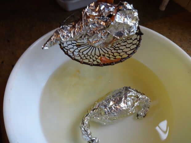Paso 15: Coloque los huevos en un tazón de agua fría, o ejecutarlas bajo el grifo de agua fría, hasta que estén lo suficientemente frías como para abrir.