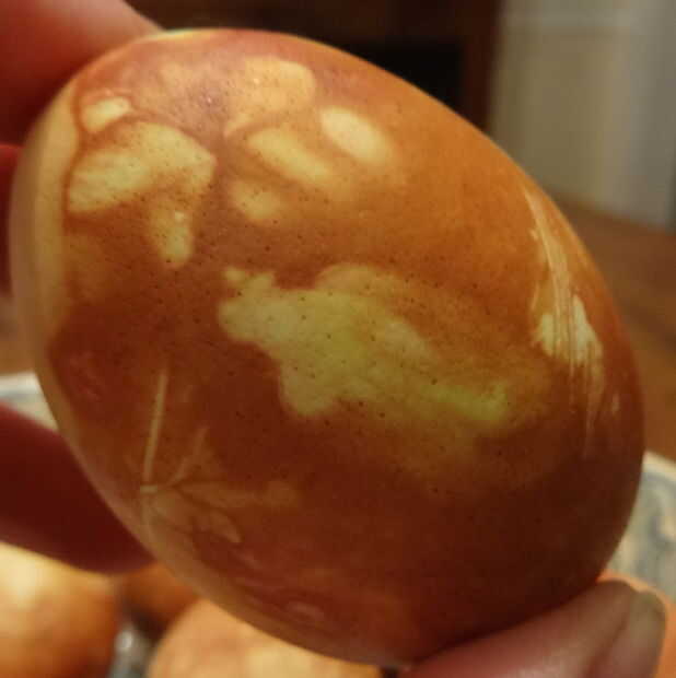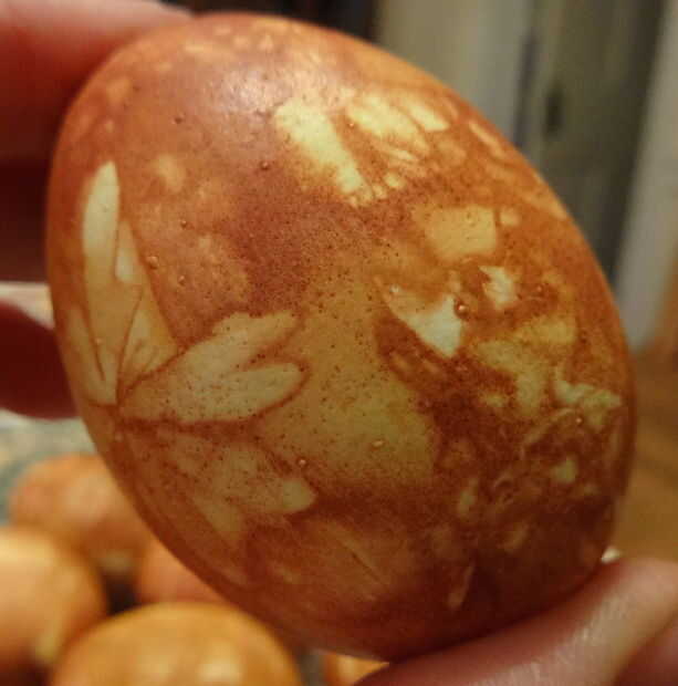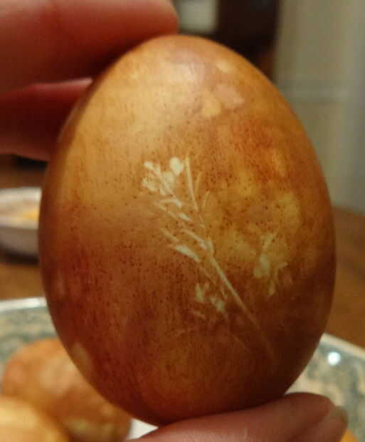 Huevos de Pascua teñidos holandés con las pieles de cebolla y flores (17 / 17 paso)