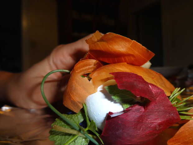 Paso 8: Enrolle más pieles de cebolla sobre las hojas o flores y la superficie del huevo entero.