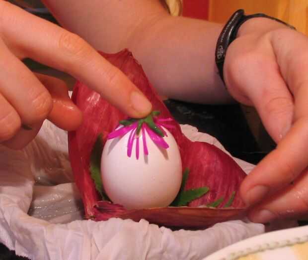 Hemos seguido las instrucciones de wrique pero usa pétalos de iris morado, peladuras de zanahoria, desde japonesa, Mahonia y perejil además de la cebolla roja. Los demovistar, Mahonia, planta de hielo y zanahorias no tenían ningún color real afectan en los huevos, pero dejaron algunos diseños estarcidas frescos. El perejil y púrpura iris dejaron cierto color.