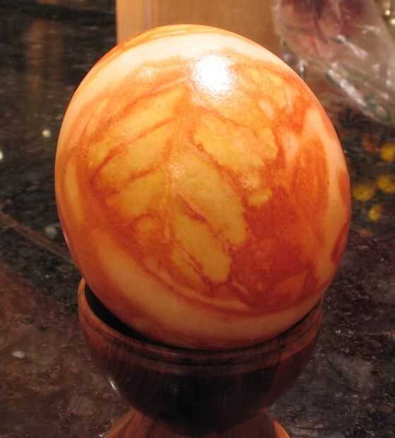 pieles de cebolla y las flores se han utilizado para teñir los huevos en la celebración de la primavera en Baja Sajonia, los países bajos del este hasta el norte de Alemania y Estonia - desde tiempos paganos. Este método de muerte huevos todavía se