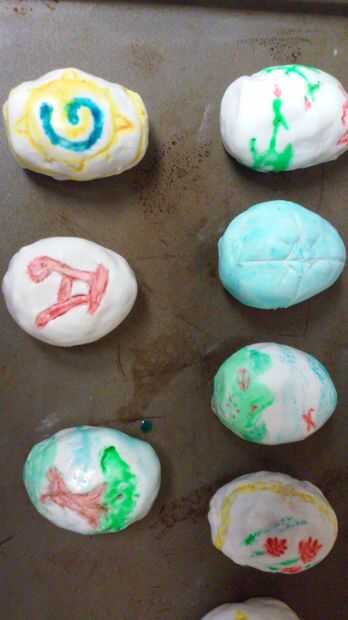 Recibí mis patrones de una variedad de fuentes, incluyendo mirando varios modelos tradicionales a través de google imágenes y diversión los (como el logo de la piedra de hogar). Si quieres hacer una base de color sólido, necesita unos minutos para dejar que se seque antes de agregar el siguiente color en la parte superior.