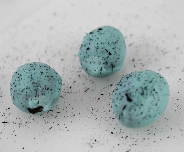Coloque uno de los huevos de los otros en un banco de trabajo limpio (como el Banco de la cocina). Sumergir el pincel en el chocolate y luego sostener el cepillo por un lado, funcione con sus dedos a través de la sot de cerdas que el chocolate se salpica sobre el huevo.